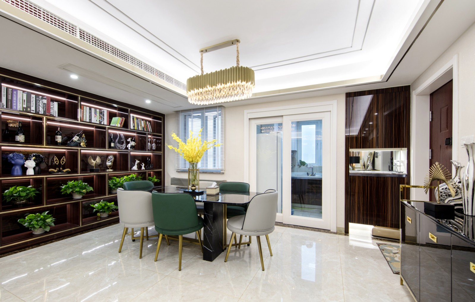 新城璟悅城的這套三居室面積為123平方米,整體戶型南北通透、采光較好,設計師在設計時將重點放在了功能配比與動靜分區上,將休憩區域與會客區域、就餐區域隔開,以提升生活質感。為滿足主人的辦公、閱讀需求,設計師將一塊空間劃分為迷你書房,搭配以簡單的裝飾,讓空間兼具功能性與美觀性。