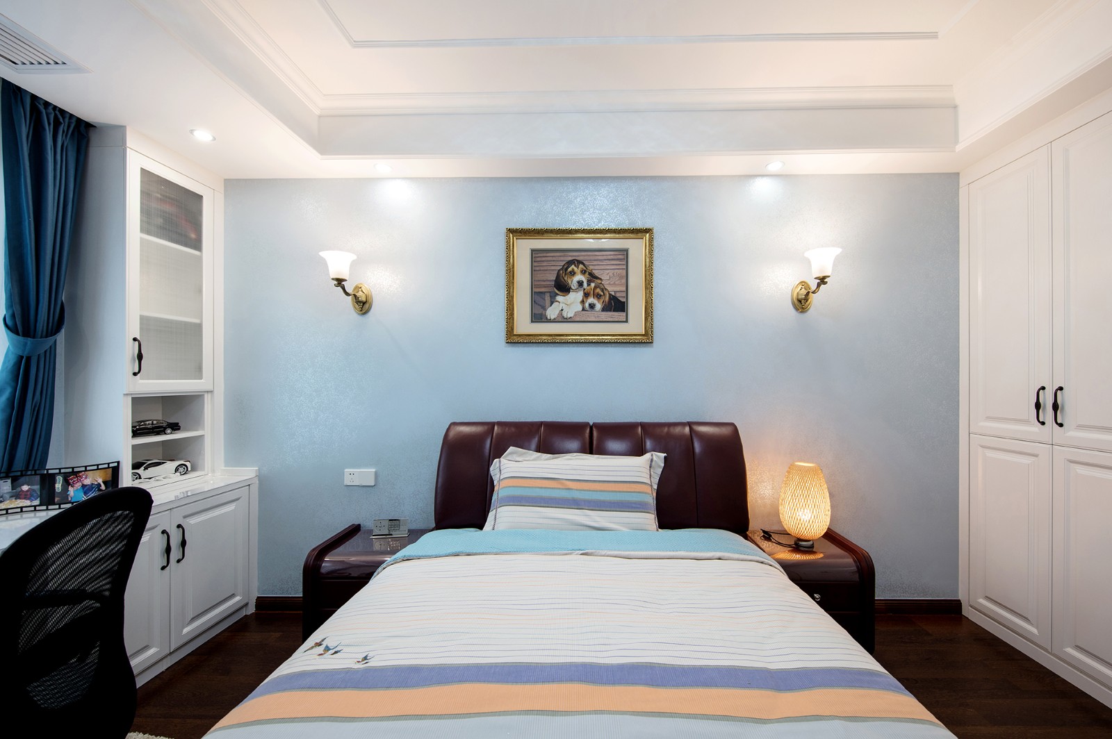 案例簡介:本案例的業主是高級白領,對家有著自己獨特的了解,因此在與設計師交流的時候表達了自己希望擁有一個個性化的家居空間。同時,由于業主夫婦目前帶有一個剛上幼兒園的小朋友,因此在設計的時候希望能夠將童真也融入其中,為孩子打造一個趣味十足的生活空間。基于此,設計師選擇了個性感相對比較濃厚的美式裝修風格,再搭配以各種清新明麗的色彩,來營造一種自由灑脫而又不失童真的個性家居。