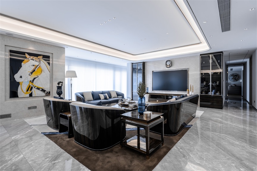 案例簡(jiǎn)介:本案例的業(yè)主對(duì)于生活品質(zhì)有著極高的要求,想要在自己的房屋中體現(xiàn)出低調(diào)而又輕奢的高級(jí)氣息。而由于陽(yáng)臺(tái)區(qū)域面積較大,因此業(yè)主希望能夠?qū)⒃搮^(qū)域空間進(jìn)行合理的利用,能夠滿(mǎn)足自己與家人、朋友的休憩使用需求。基于此,設(shè)計(jì)師選擇了相對(duì)比較穩(wěn)妥的輕奢風(fēng)裝飾整體空間,同時(shí)借助材料本身的質(zhì)感裝飾房屋。
