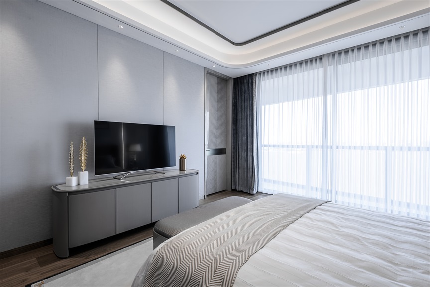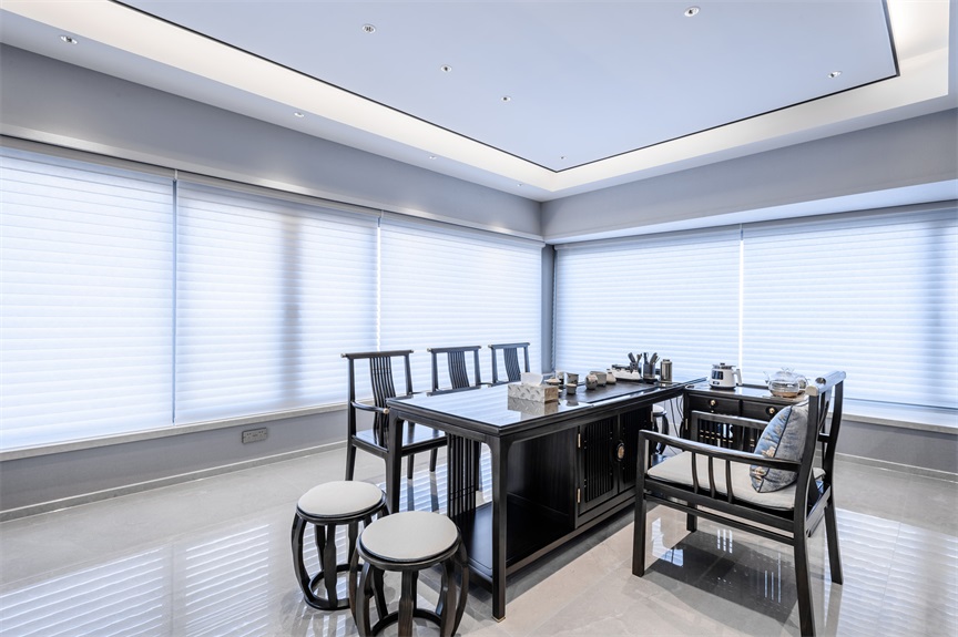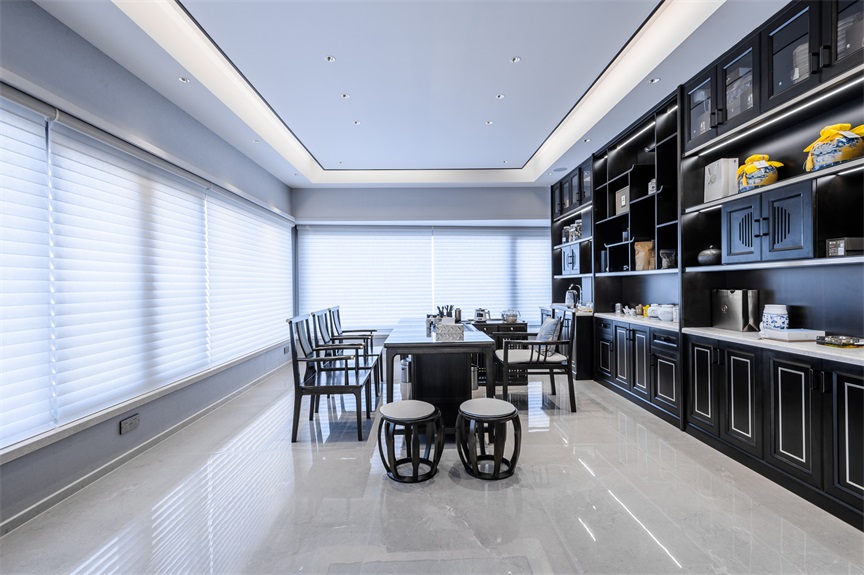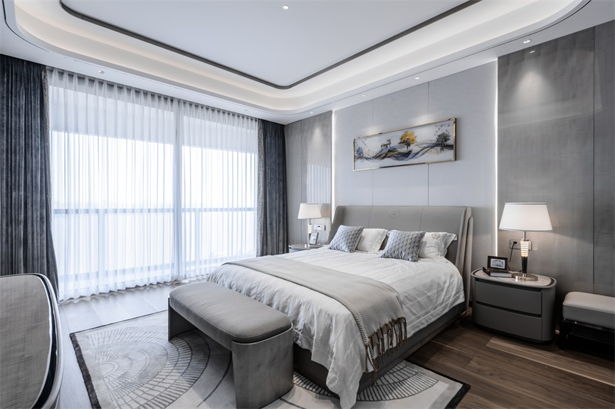 大面積的落地玻璃窗讓陽(yáng)光能夠“肆無(wú)忌憚”的進(jìn)入休憩空間,凹顯式的吊燈設(shè)計(jì)搭配上鑲邊處理,簡(jiǎn)單低調(diào)中又暗含著典雅貴氣美。