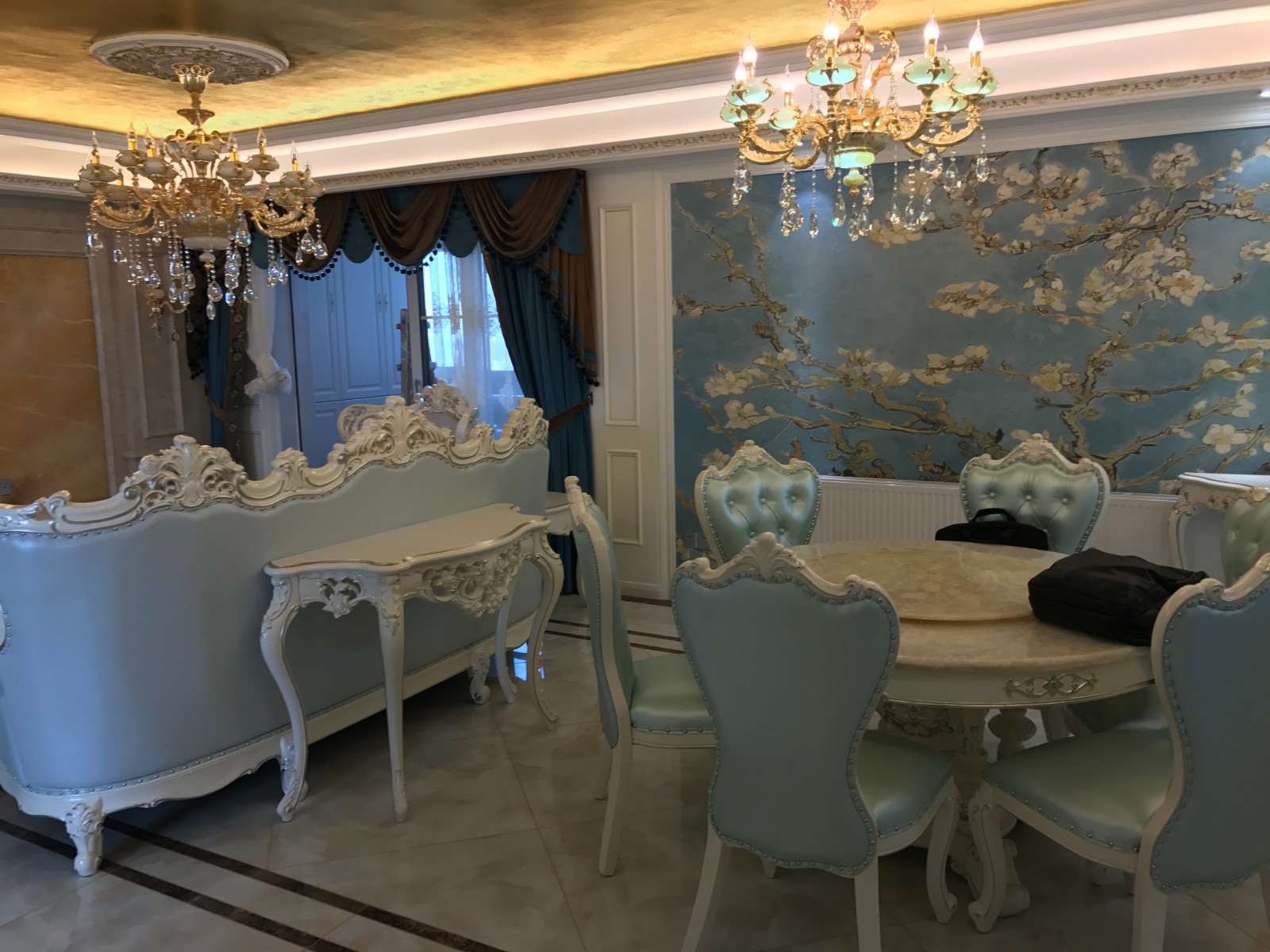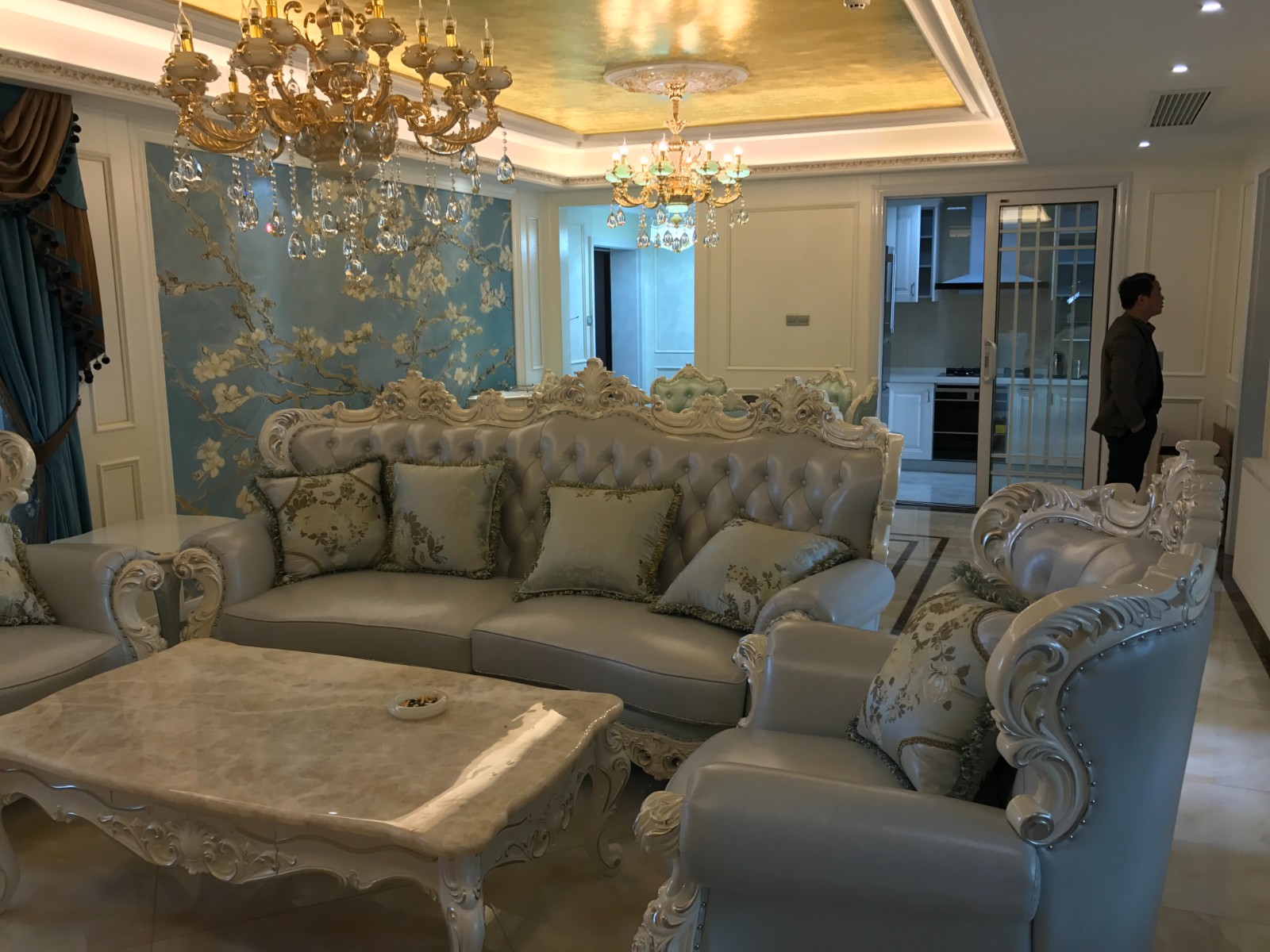 華麗的巨型吊燈搭配上柔軟的淺色啥呀,低調(diào)而不失華麗貴族感。家具上的細(xì)節(jié)處理,則則讓整個(gè)空間更具精致美。