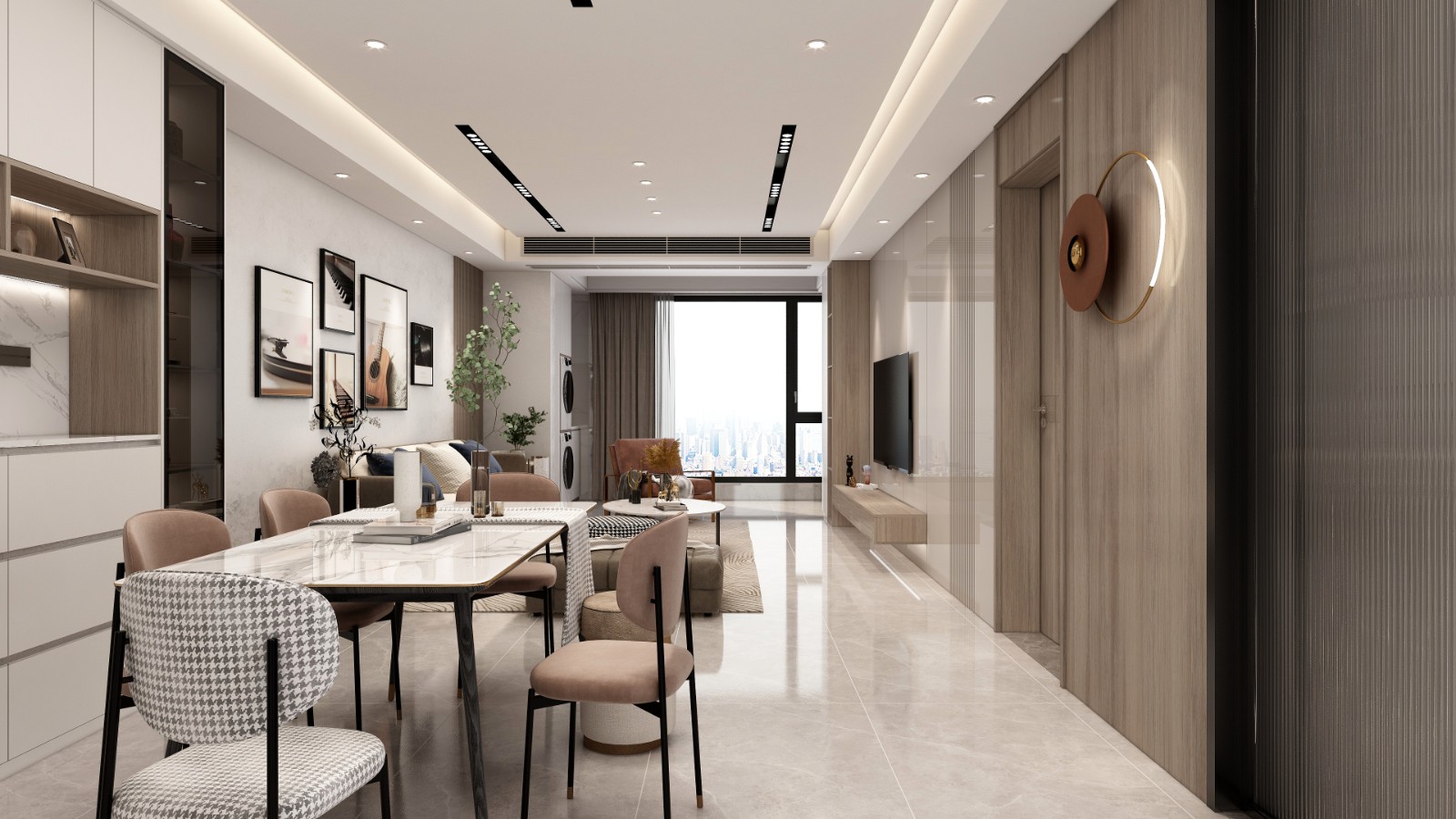 案例簡介:本案例的家庭為幸福的五口之家,除了業主夫妻二人外還有業主的父母與孩子,因此業主希望設計師能夠根據不同家庭成員的需求對空間進行合理的規劃與設計,以提升起居幸福感。而在與所有家庭成員進行一定交流溝通后,設計師折中選擇了認可度比較高的現代輕奢風作為空間主裝修基調,而色彩的選擇上則以簡潔素雅為主,這樣相對比較耐看且易于打掃。
