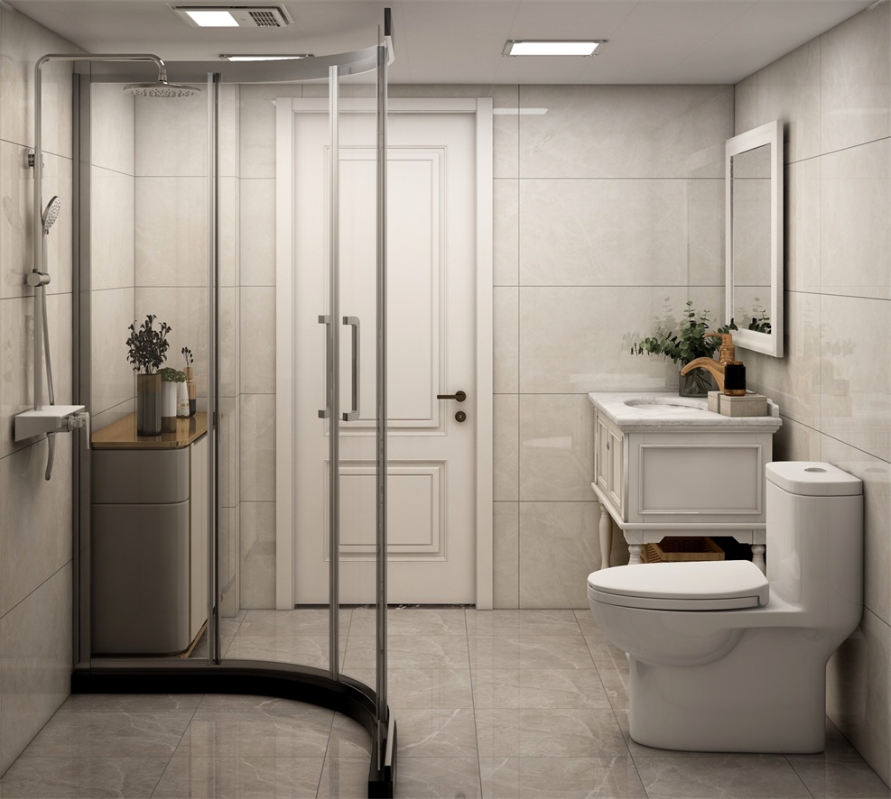 為提升衛生間區域的潔凈感,設計師選用了大面積的白色作為衛生間主基調色,搭配以少量綠植進行點綴,清新又高雅。