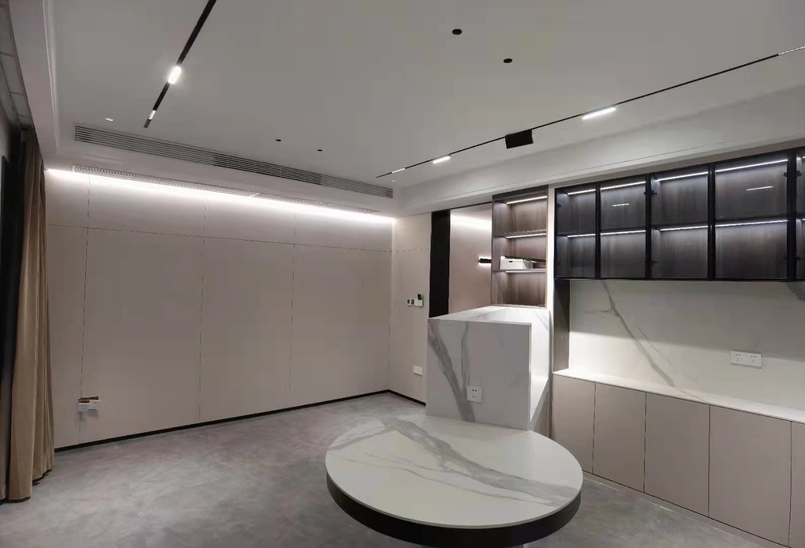 升降式臺面有利于節省空間面積,大面積的白色則從視覺上提升空間寬敞感。