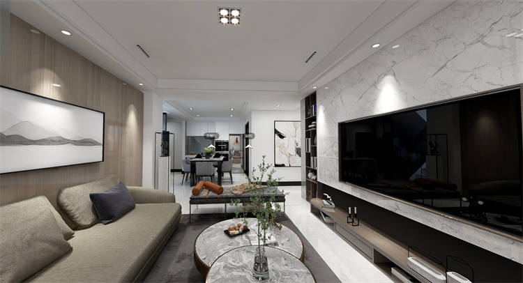 帶有灰色暗紋處理的大理石墻壁簡約而又不失高級感,在無形中提升家居品質感。