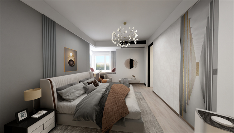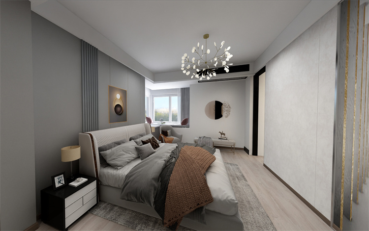 灰色墻面搭配上線條裝飾,簡約而又不失藝術高級感。