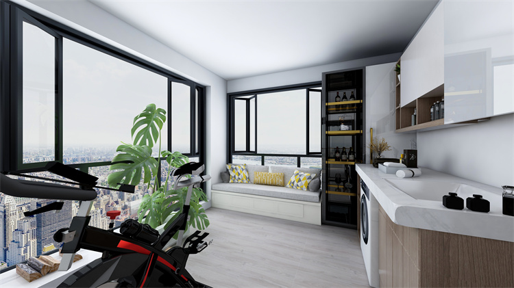 陽臺空間采用大面積玻璃進行隔斷,確保安全的同時有效提升空間觀賞性能。