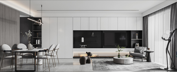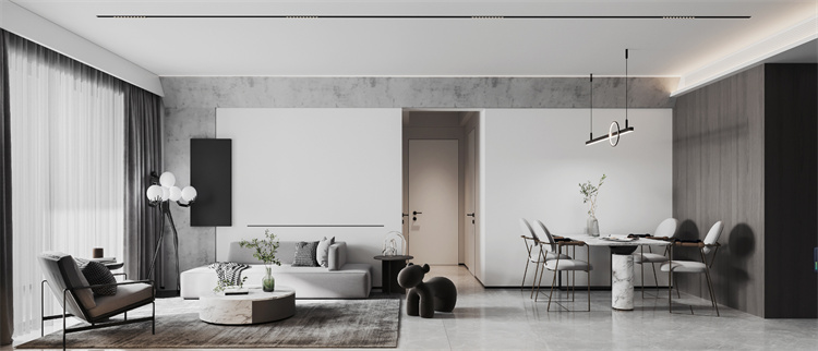 案例簡介:對于空間氣質(zhì)的表達是一門藝術(shù),一個優(yōu)秀的設(shè)計師往往能夠借助簡單的色彩組合來營造不同的氛圍感,再借助一些合理的裝飾點綴,打造出一所帶有獨特氣息的家居空間。本案例的設(shè)計師借助簡約的灰白配色來營造空間的個性與氣質(zhì),同時借助不同材料的質(zhì)感裝飾空間,讓整個家居空間呈現(xiàn)簡約而又不簡單的視覺效果。