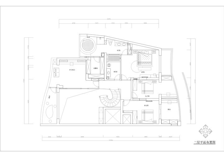 世紀江尚的這套150㎡的四居室房屋,空間戶型結構相對比較復雜,如何將處于非正位置上的空間區域進行合理高效的利用成為了該戶型房屋的設計難度。設計師根據業主的實際需求將兩個臥室設計于對門處,以滿足業主照看孩子的需求。而房屋相對比較犄角的區域則設置為廚房,如此即可將空間合理利用,又能夠避免廚房區域的油煙進入生活區域空間,