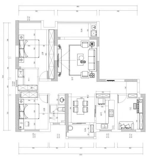 廣電蘭亭榮薈的這套二居室住宅面積在90㎡左右,原有的戶型結構細小角落較多,加上原本房屋面積不大,因此需要對整體空間進行更加合理高效的利用。設計師在充分考慮業主使用需求的前提下,將次臥旁邊的瑣碎成一個迷你儲物間,有效避免了空間的浪費。而開放式廚房的設計,則有效節省了室內空間的占用。