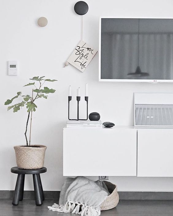 ▲誰說壁掛只能出現(xiàn)在進(jìn)門玄關(guān)處?顏值高、有創(chuàng)意的壁掛組也能和電視墻完美搭配!