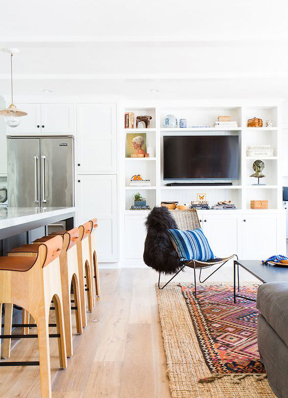有些人認(rèn)為客廳是創(chuàng)造交流的場所,而電視的存在會吸引大家的注意力,削弱交流氛圍,所以要把電視徹底驅(qū)逐。那偶爾需要電視來消磨時(shí)間、化解尷尬咋辦呢?或許可以試試這些辦法,巧妙地把電視“藏”起來,既美觀又靈活。