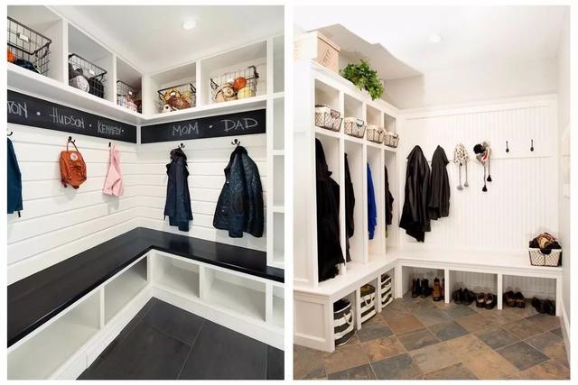 這是家庭中最常見的一種,整面墻全都利用起來作為收納,底部懸空,預留出空間,可以放經常穿的鞋子或拖鞋。