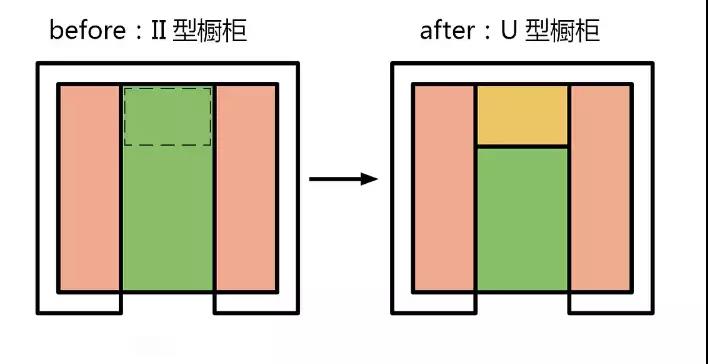 可見「U」型櫥柜在節省面積方面有壓倒性的優勢,其次就是「II」型櫥柜。