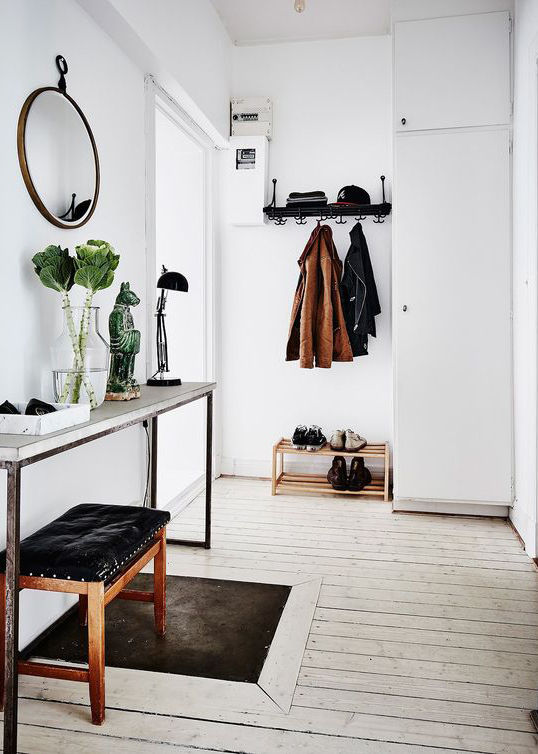 我們都習慣進門隨手脫掉大衣,出門前套上外套,如果玄關沒有做好衣物收納,家里就會顯得特別邋遢。除了坐擁豪華庭院的大別墅,普通人家留給玄關的空間可能只是進門的那一平方地。在面積有限的情況下,就別再放立式衣架給家里添堵了,利用墻面的垂直空間妥妥的!