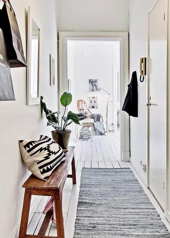 長凳真是個好東西,床尾,餐廳,玄關都有它的存在,靈活又方便。玄關處的長凳,首先是用來坐著穿鞋的;其次,還能客串當一把置物架,嗯,就是那股隨意的feel~