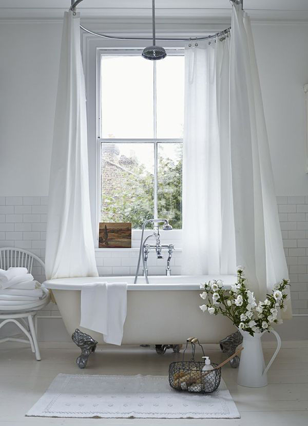 ▲用浴簾做隔斷,是一個省錢又有效的方法,純色浴簾用好了還有這種仙氣十足的效果。