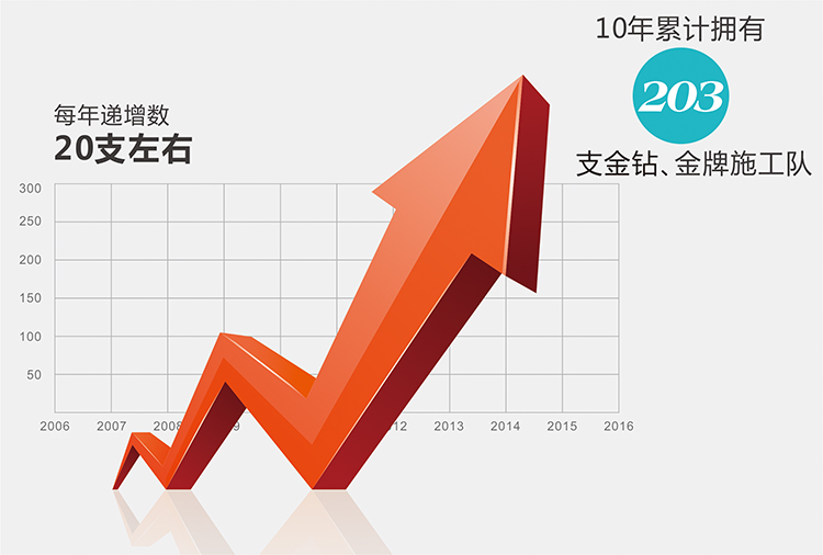 在澳華,連續10年累計擁有203支金鉆、金牌施工隊,總數在業內遙遙領先,并且每年以20支左右的數量遞增。