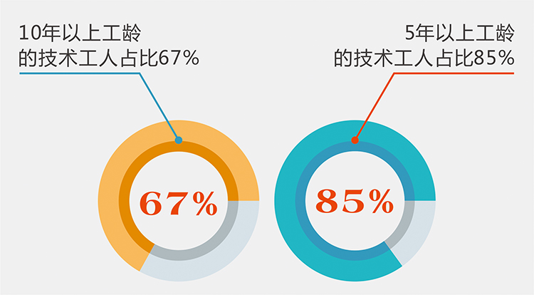 在澳華,10年以上工齡的技術工人占比67%、5年以上工齡的技術工人占比85%。