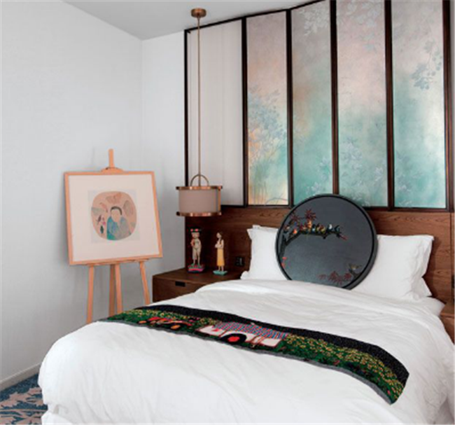 九、臥室樹木圖案背景墻面直接作為分隔墻