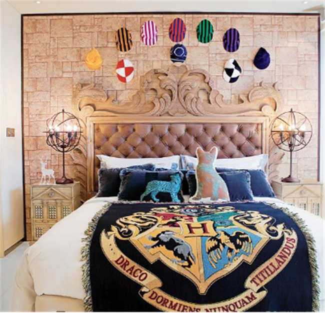 巴洛克式的床頭造型一定會成為哈迷們的心頭好,借助一條霍格沃茨魔法學院的“魔毯”,英倫、古典的風格在轉瞬之間擁有了魔幻能量。