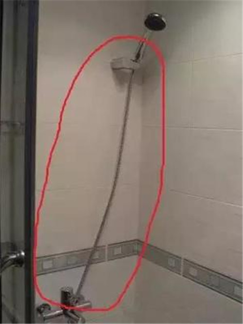 排水管時工人竟將管子從上往下走,結果事后安裝花灑支架時便不敢隨意打洞了,以此只能把支架裝在墻角。我看著都為這管子心痛,這樣一直歪著肯定很累吧。