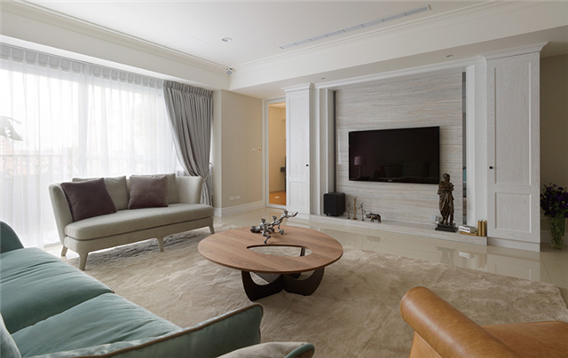選用一些樸實,天然的材料,能讓整個家有一種輕松自然的感覺,電視背景墻作為體現客廳風格的重要元素之一,選用具有天然紋理的石材,可達到非常理想的效果。