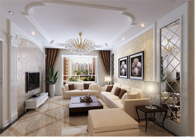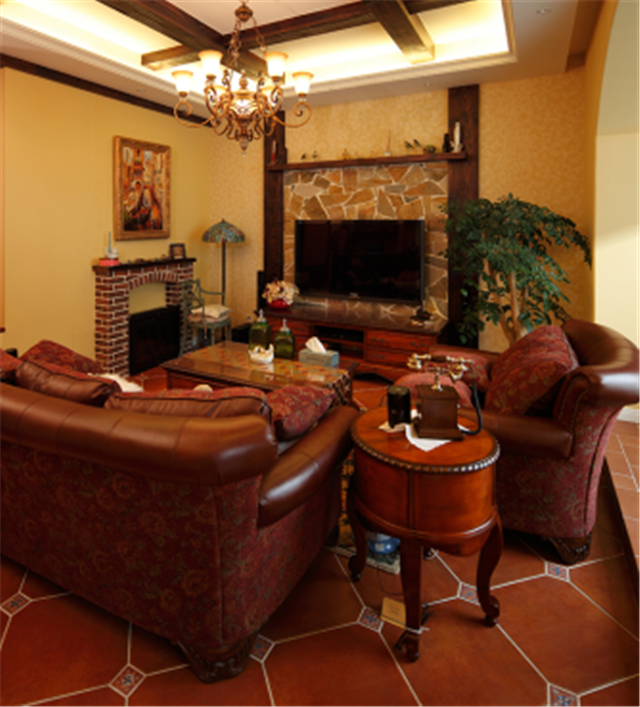 選用符合客廳整體風格的瓷磚進行規則或個性的拼貼,不易沾惹灰塵,也利于擦洗,能時刻保持光潔如新。
