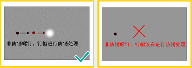 若螺釘為非防銹螺釘,則釘帽應(yīng)進(jìn)行防銹處理,應(yīng)用涂料涂飾。