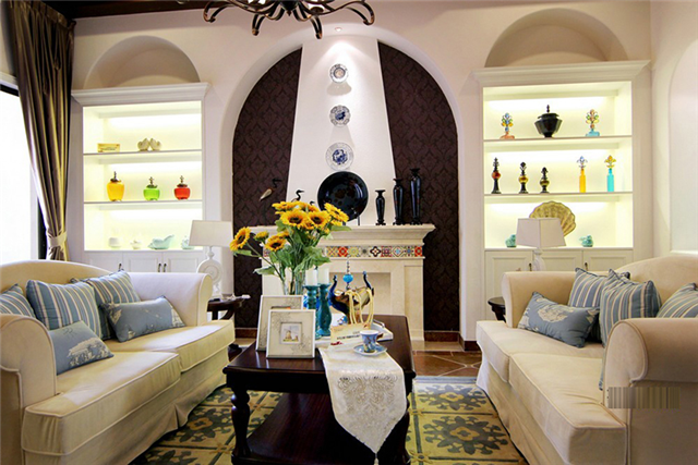拱形的浪漫空間:拱門與半拱門、馬蹄狀的門窗。建筑中的圓形拱門及回廊通常采用數個連接或以垂直交接的方式,在走 動觀賞中,出現延伸般的透視感。此外,家中的墻面處(只要不是承重墻),均可運用半穿鑿的方式來塑室內的景中窗。這是地中海家居的一個情趣之處。