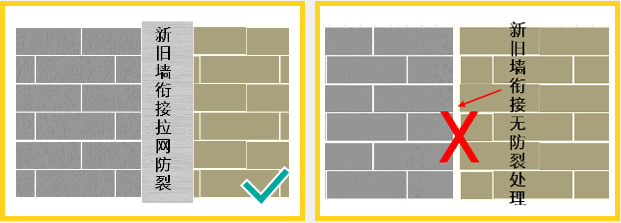 2、新舊墻體連接掛網,避免墻面開裂