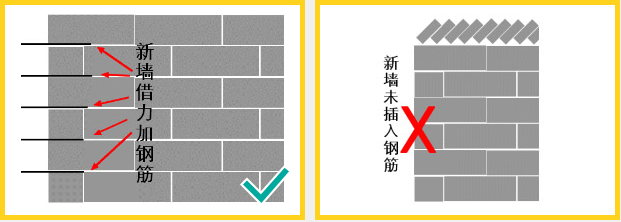 3、新砌墻銜接處插入鋼筋