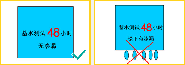 防水工程完工且徹底干透后,能進行蓄水測試的應該進行蓄水測試,測試時間要求48小時,且無滲漏。