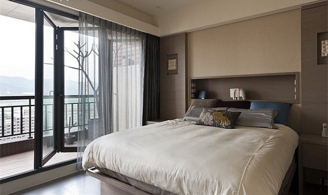 收納形式:定制柜體、收納型床頭柜、雙人床