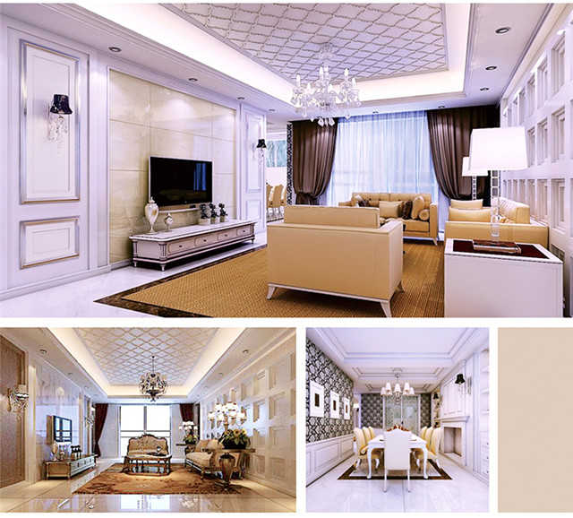 材質(zhì):拉毛粉飾、大理石的運(yùn)用,使室內(nèi)裝飾更講究材質(zhì)的變化和空間的整體性。