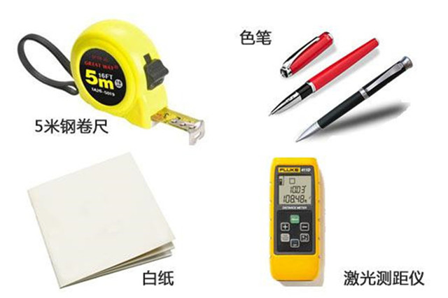 量房時候最基本需用到的工具有卷尺、紙筆,卷尺最好帶長度在5米以上的。其他的工具還有相機、繪圖板、激光測量儀等。傳統的用卷尺量房操作起來比較麻煩,而且測量誤差也較大。現在量房的工具越來越先進,如激光測距儀,操作簡單,輕輕一照就可以將數值反應出來,精確度很高。