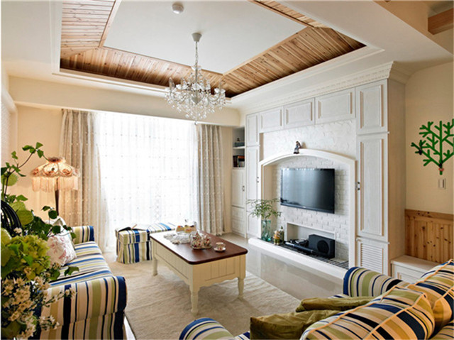 推薦2:巧妙利用電視背景墻,將書柜和裝飾柜嵌入其中,兼具收納與裝飾功能。