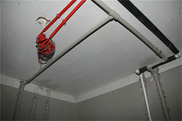 驗(yàn)收攻略:禁止把水管壓在管線上面,首先要分清水管和管線。標(biāo)有紅線的粗管是熱水管,標(biāo)有藍(lán)線的粗管是冷水管,較細(xì)的純白色管是管線。