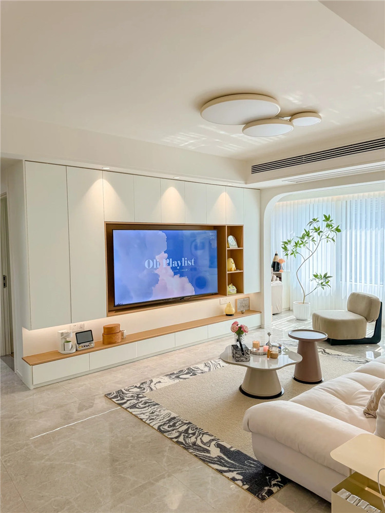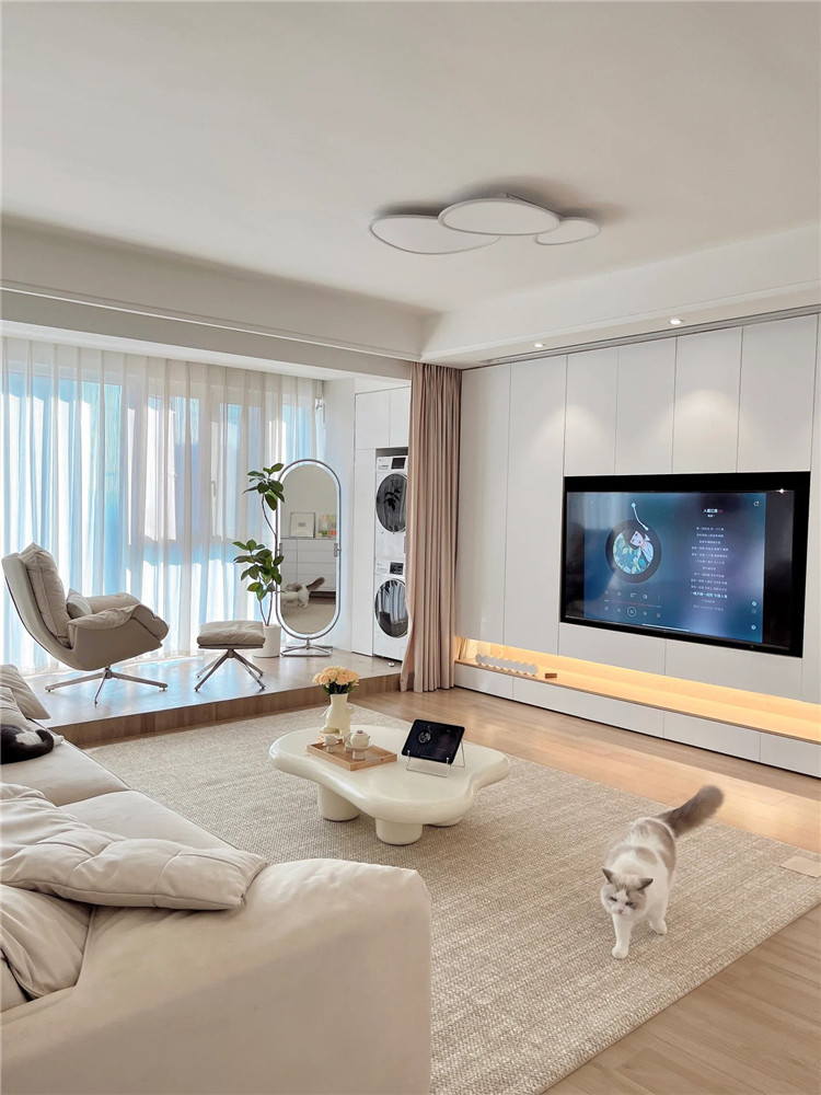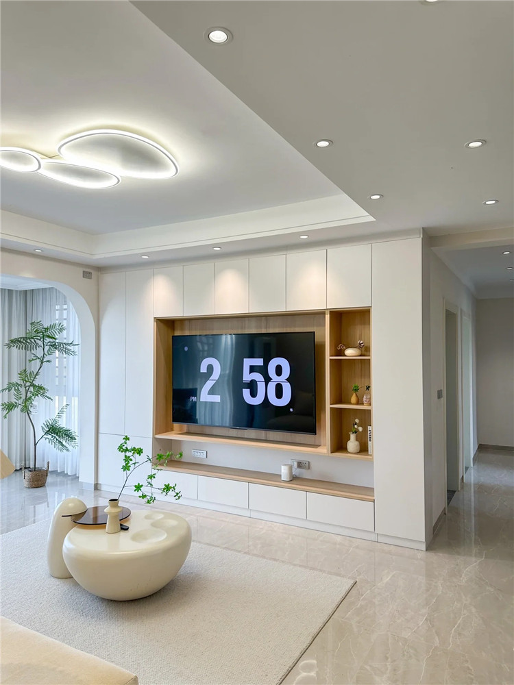 如果你的客廳開間在3米以上,我強烈建議考慮安裝滿墻電視柜,它會為你的家居提供出色的儲物解決方案。
