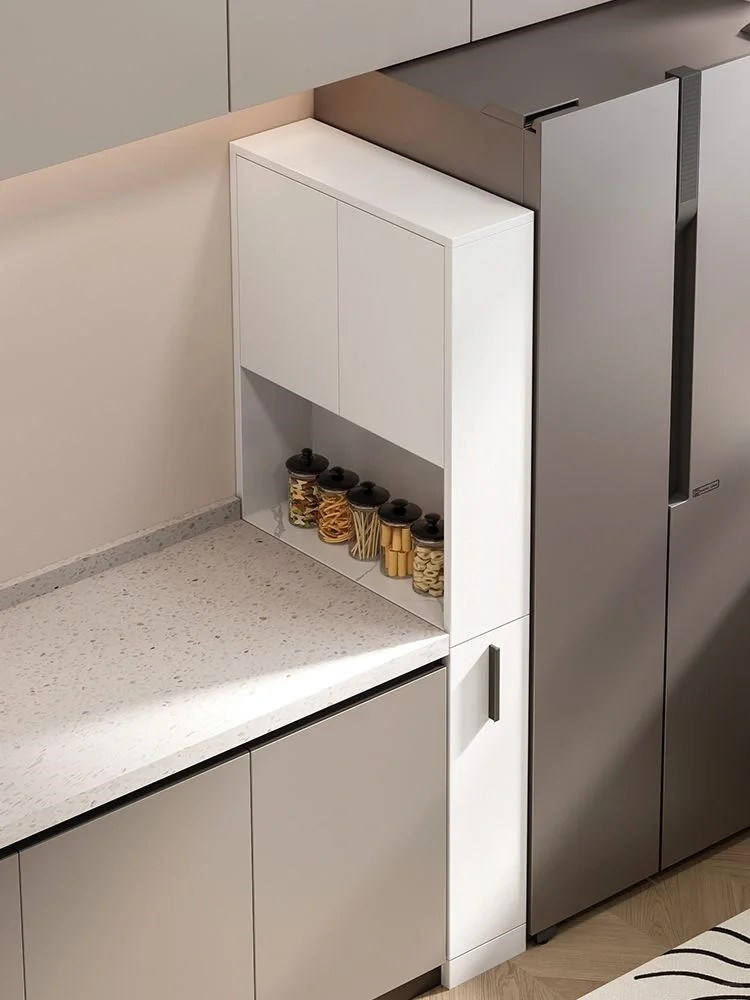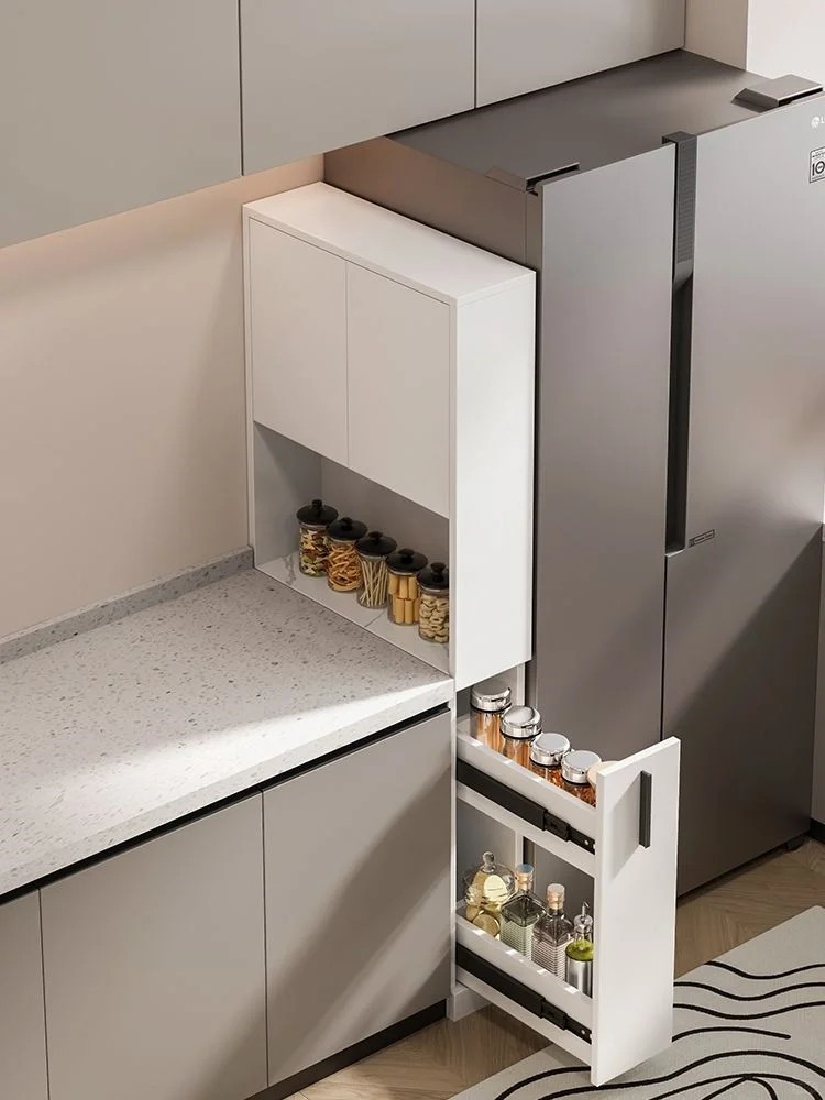 尤其是廚房,總會有一些比較窄的空間,比如櫥柜和墻面之間、冰箱和櫥柜之間、冰箱和墻面之間等等。