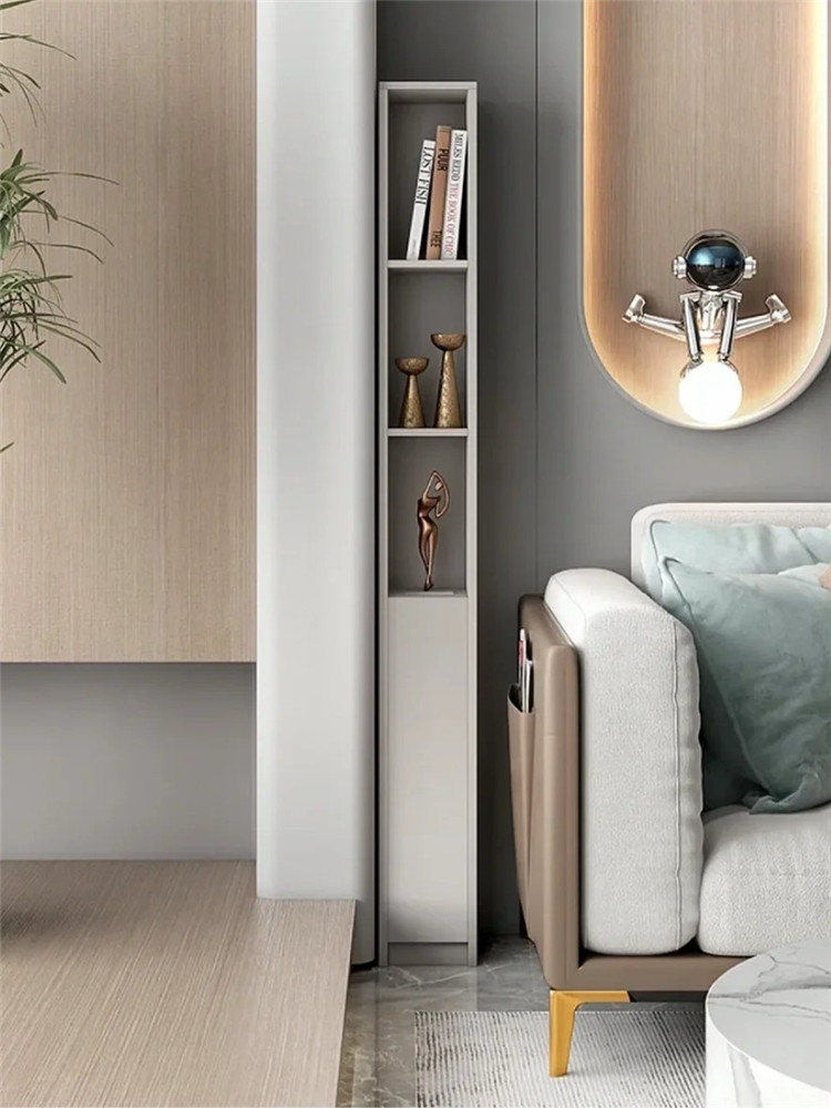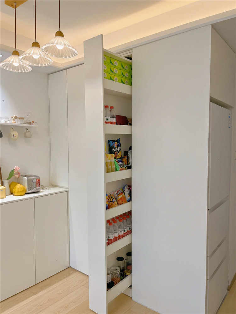 這種雖然放不下常規的收納柜,但還是可以利用一下,通過定制超窄收納柜的方式,讓有限的空間發揮出更多的價值。