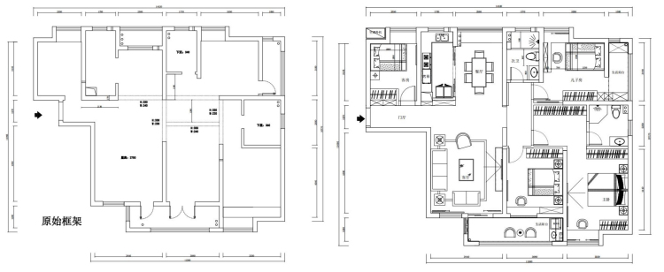 荷景苑這套162平方米的四居室住宅可利用設計面積較廣,原有的戶型結構也基本能夠滿足現有家庭成員起居需求。不過業主提出,未來還會迎接一個寶寶,因此設計師在進行空間設計的時候預留出一個足夠的空間,確保兩個孩子都能夠擁有自己的獨立空間。而整體軟裝上,設計師則為業主們選擇了相對比較經典耐看的輕奢風,確保整個室內空間易于打掃。