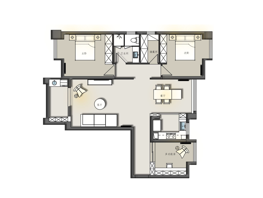 3 保留三房,設置多功能房,滿足多人口家庭需求。