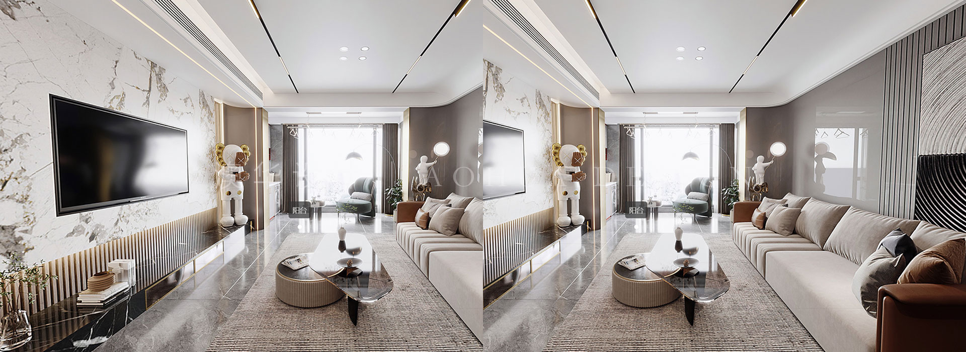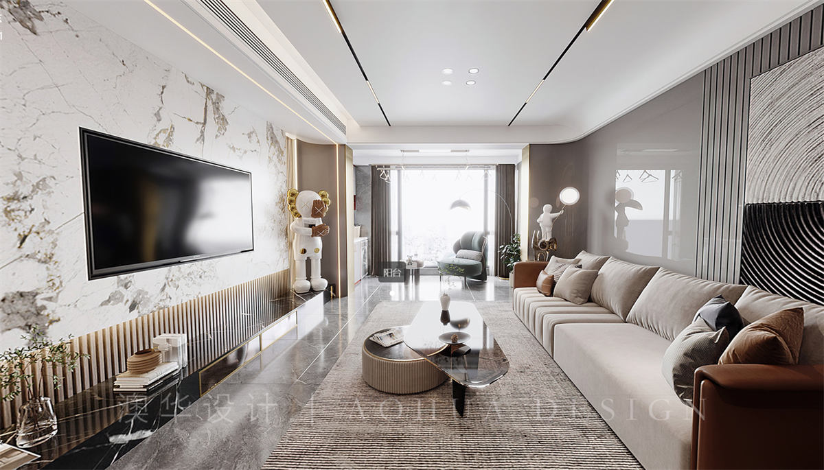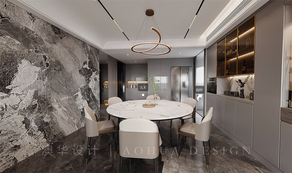 • 簡約于形,態度于心,客廳的氣韻如紳士一般,低調、沉穩、高貴。在開放的空間中,不同的材質表現和碰撞,和諧低調地表達著空間的沉穩靜逸,一種貴氣感油然而生
