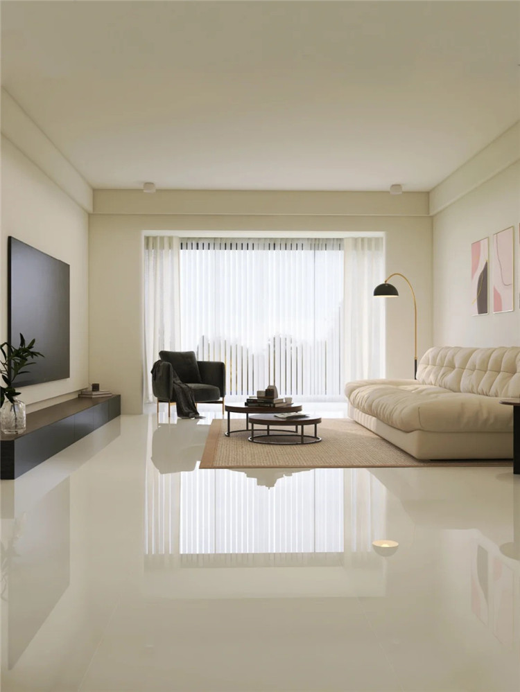 要想達(dá)到極簡(jiǎn)大氣的裝飾效果,在柔光磚的選擇上,應(yīng)盡量選擇素色柔光磚,通鋪之后的效果較為理想。
