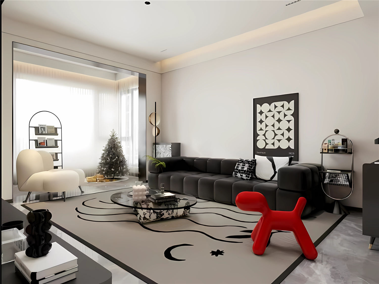 案例簡介:本案例的業主喜歡與眾不同的東西,因此他希望自己的家也能夠帶有濃烈的個人色彩。而由于業主平時工作比較忙碌,并沒有過多的時間用于家居打理,因此設計師選用了現代簡約風進行裝飾,同時借助不同的線條組合搭配來突出空間的個性感與獨特感。而色彩的選擇上,設計師則選用了反差感較大的不同顏色進行搭配,通過色彩的對比來突出空間的特有氣質。