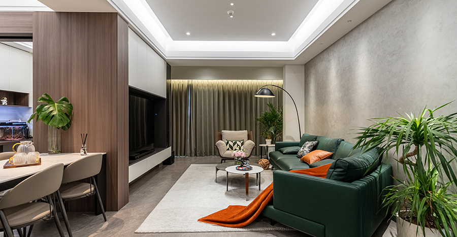 踱步至客廳,設(shè)計(jì)師通過(guò)點(diǎn)線面的極簡(jiǎn)表達(dá),進(jìn)一步傳遞簡(jiǎn)約而精致的生活態(tài)度,再藉由生機(jī)盎然的綠植加持空間自然氣息,讓舒適宜人的美好生活觸手可及。
