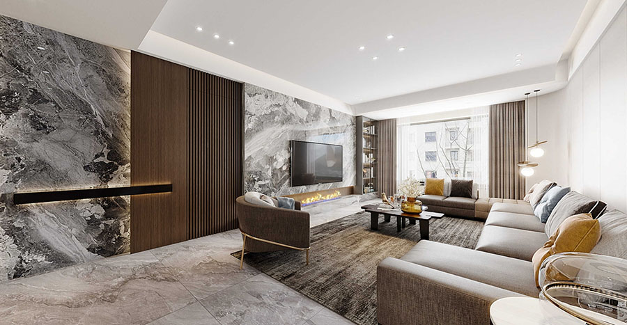 客戶夫婦職業律師,長期出差住酒店,喜歡深色木質沉穩的感覺,需要有儀式感,房子不大但功能全,有獨立辦公區